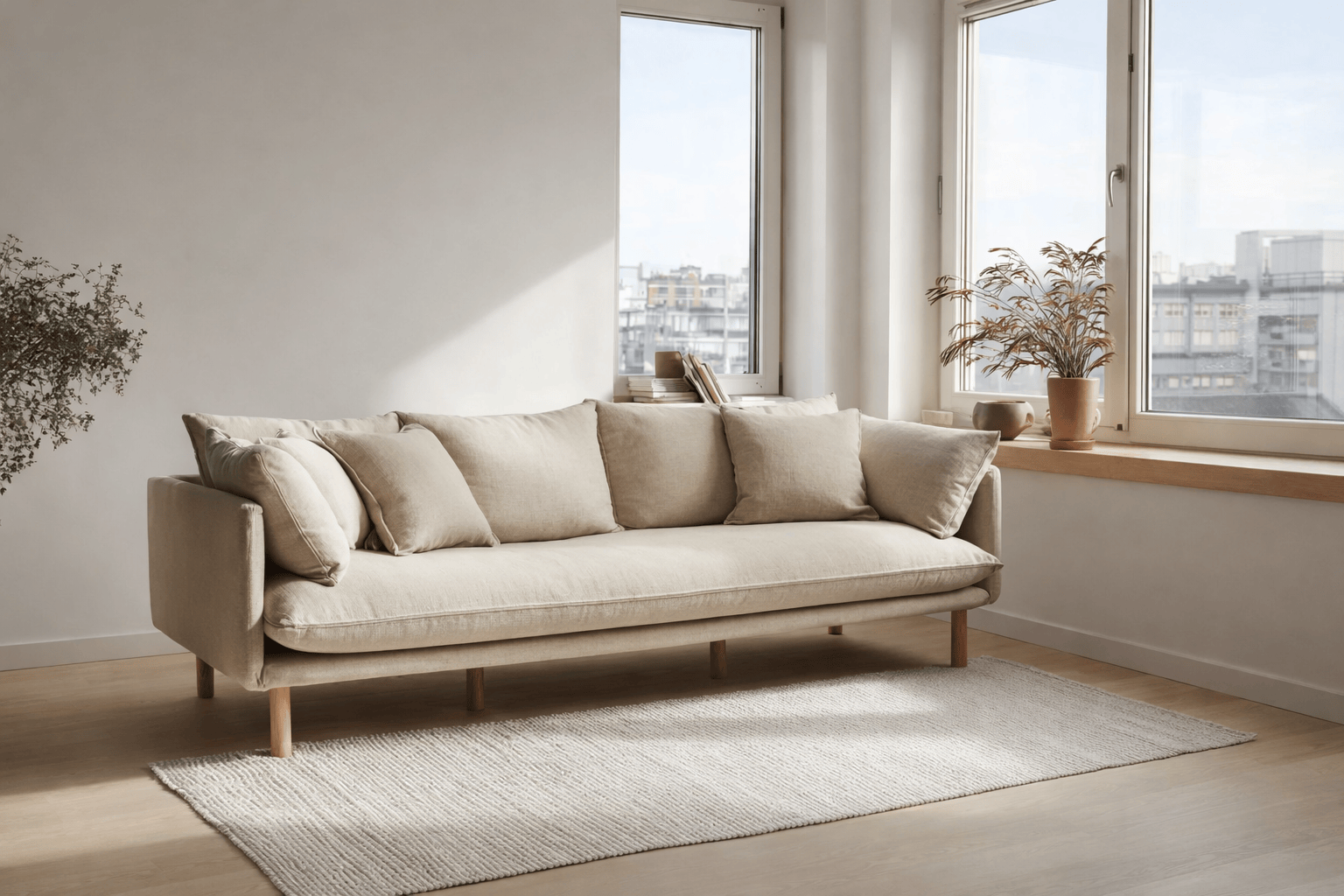 Questo elegante divano a tre posti è perfetto per qualsiasi soggiorno moderno. Con il suo design sobrio e i colori neutri, si adatta perfettamente a qualsiasi arredamento.