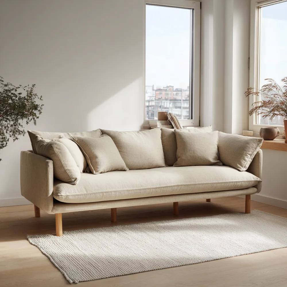 Divano a tre posti in tessuto 200x85x90 cm – Beige – Design moderno